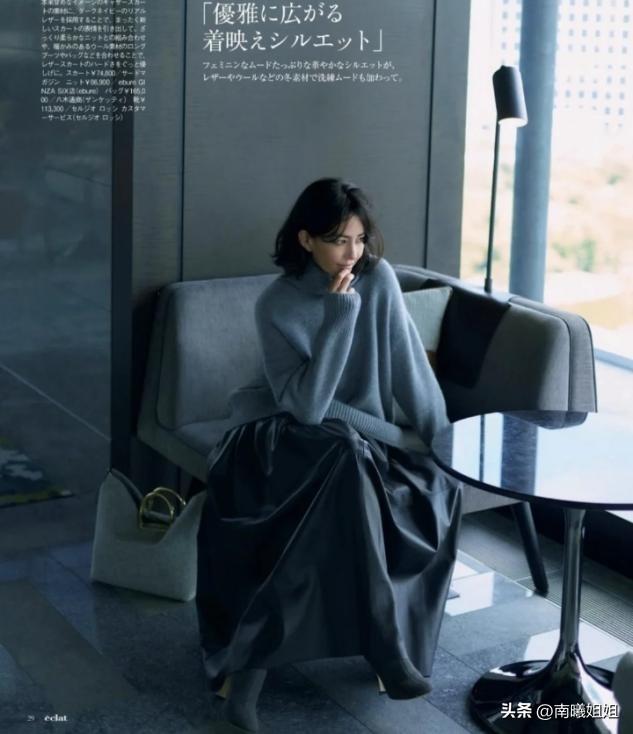 对于长裙的定义,长度设计以膝盖作为分界线,既然是冬季穿搭,那么过膝长度会提供更多的着装舒适度和保暖感。