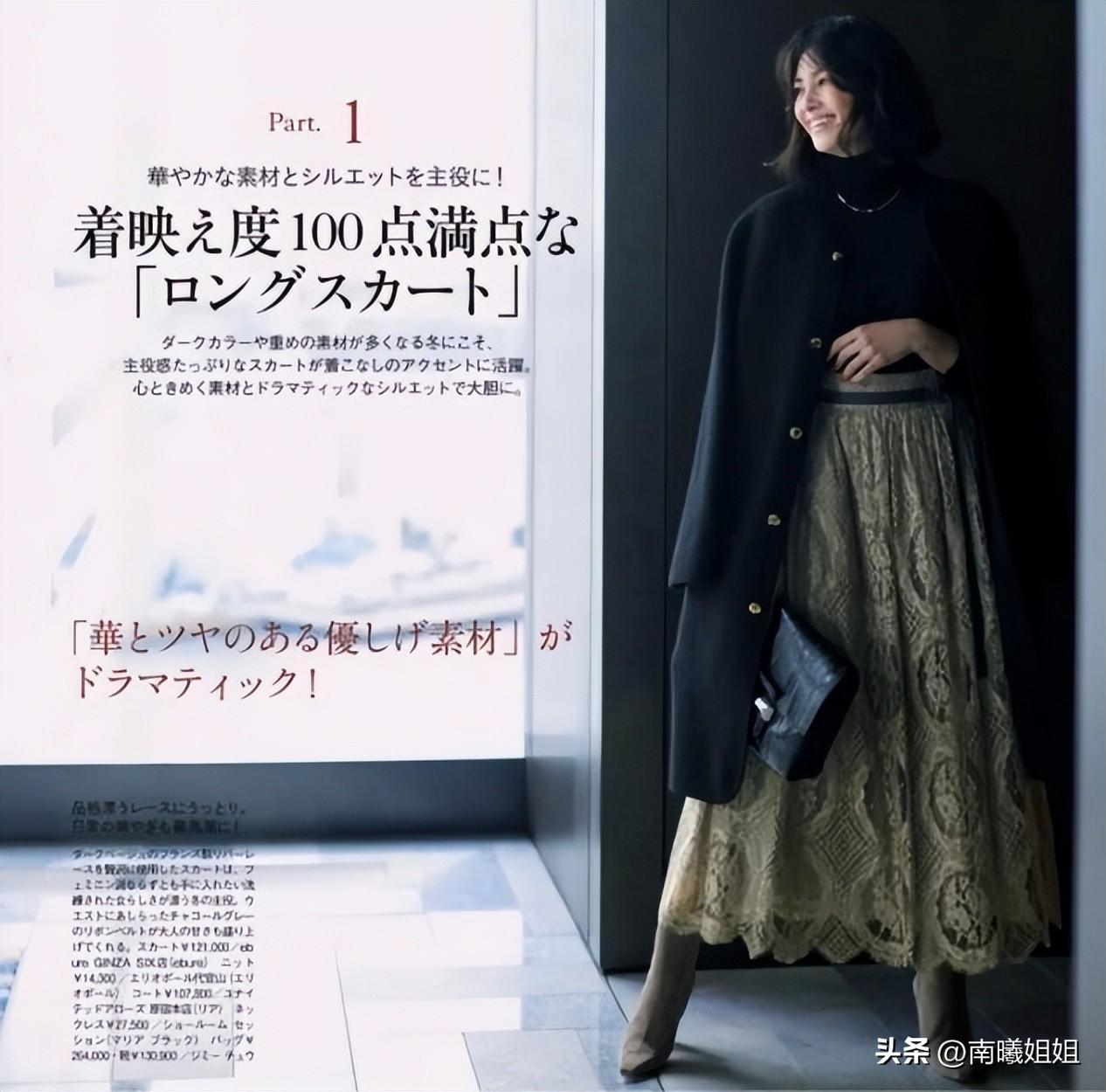 冬季穿搭裙装,长度是基础的考量,穿长不穿短,可以着装的保暖性,同时,利用修长的曲线,划分出我们理想当中的显高果。