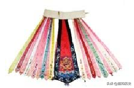 凤尾裙有三种类型,第一种是在裙腰间直接下缀绣花条凤尾。