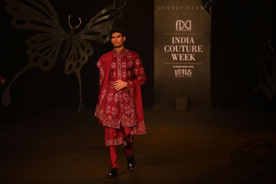 几乎每个时装设计师都展示了一些,男装设计师 Kunal Rawal 也受邀在 ICW 亮相(尽管他的时装秀确实包括穿着“男朋友”kurtas 的女性,Rawal 强调他的许多衣服都是“无性别”的)。有一种新的能量,特别是对“新郎装”的关注。
