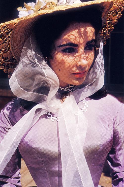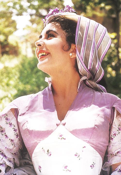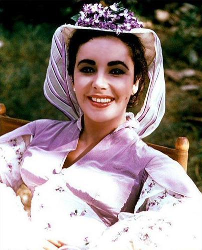 不知道是否因为伊丽莎白泰勒有紫罗兰色的眼睛,设计师给泰勒饰演的苏珊娜设计了很多紫色系的裙子。