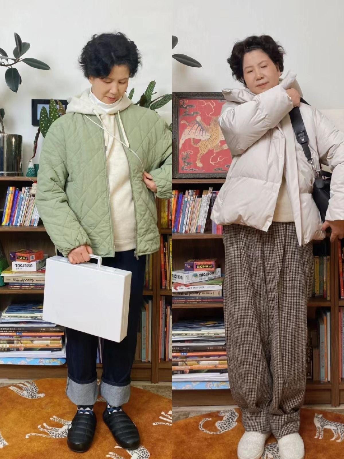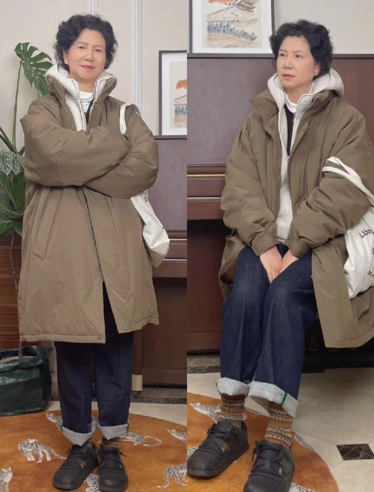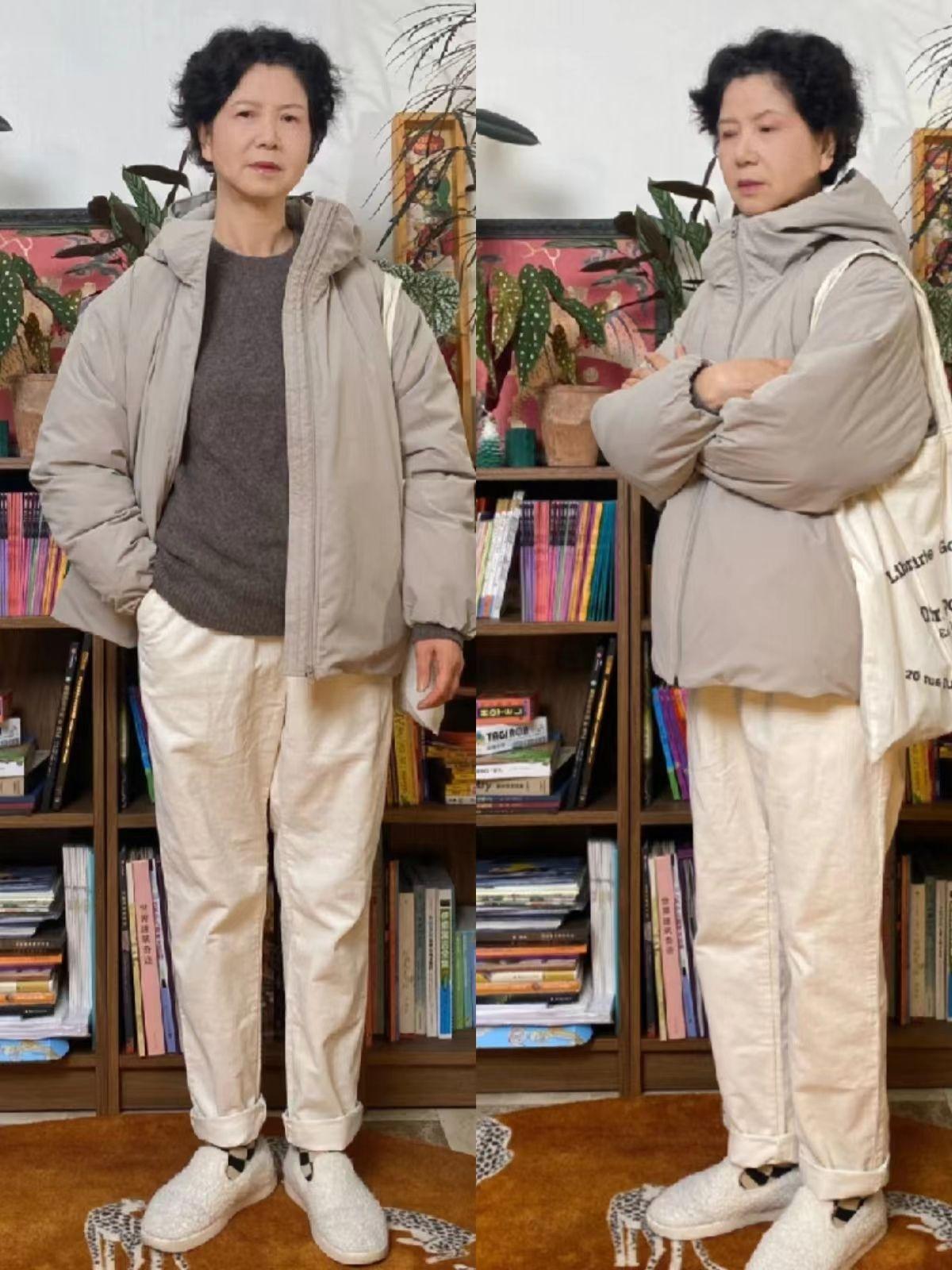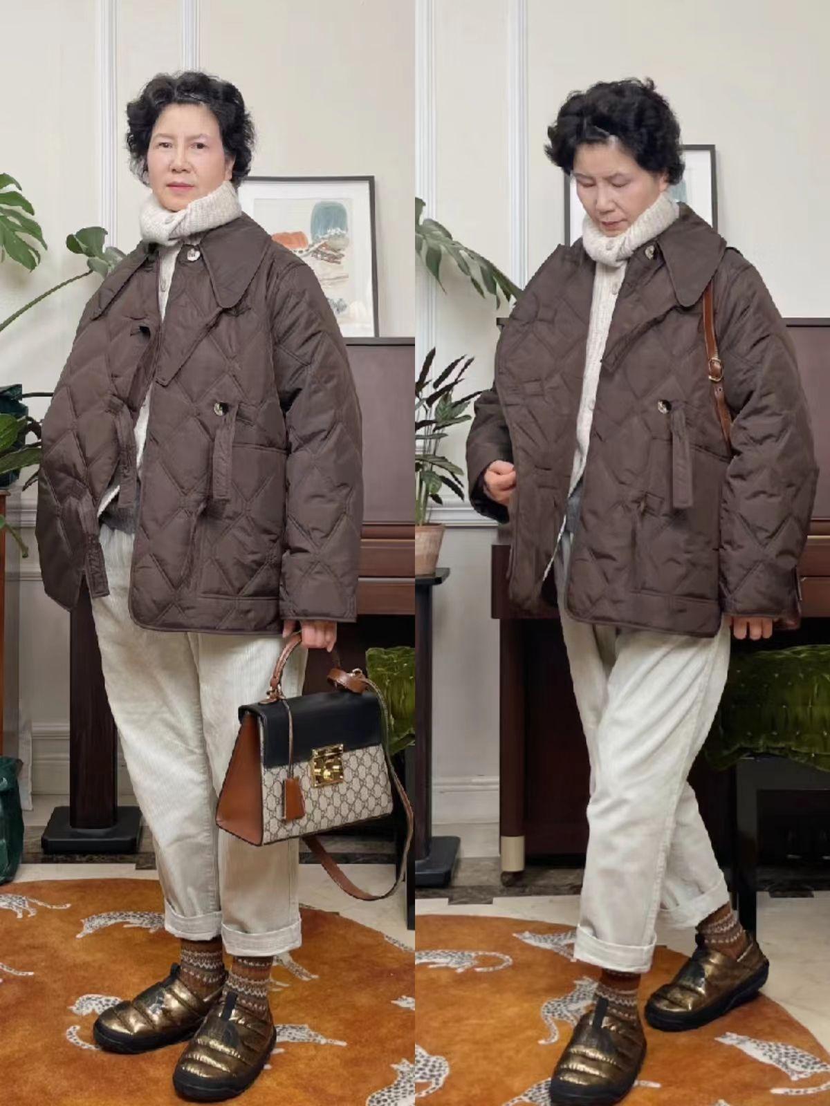 无论是短款面包服还是绗缝短羽绒服,都很适合上了年纪的女人,穿起来轻便又保暖。大家可以学习小苏阿姨匹配休闲牛仔裤或者浅色休闲裤,提升舒适度。