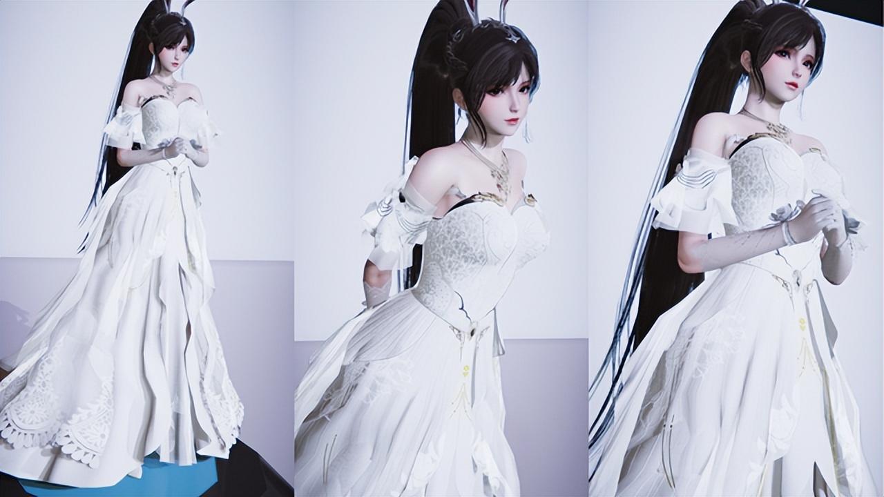 小舞除了身穿古代的长裙外,还有画师为小舞更换上了现代的礼服,依旧是一袭拖地白裙。这身长裙总体而言,是比较保守的,适合在重大场合的时候,隆重出场!不论是远距离观看,或者近距离欣赏,都是好看的!