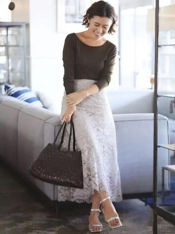 无论时尚如何发展,日本大姐们始终是膝下裙的忠实爱好者。