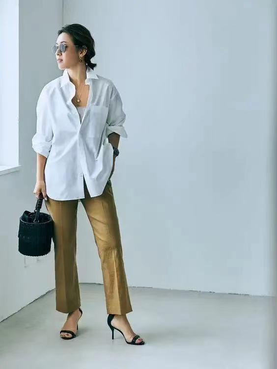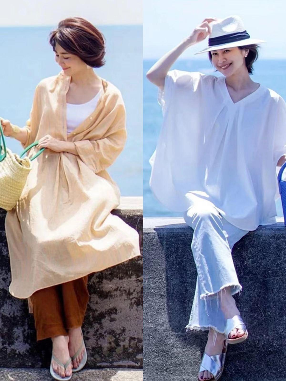 不知道大家有没有发现,上了年纪的日本大姐,出门很喜欢穿各种浅色系服饰,白衬衫、白色T恤、小白裤、杏衫、杏裙、浅蓝色衬衫裙,这些在她们的衣橱里一直都不少见。
