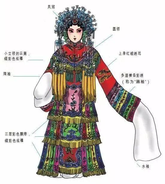 行头通过式样、色彩、图案花纹等,表现剧中人物身份、年龄、个性和生活习俗 ——