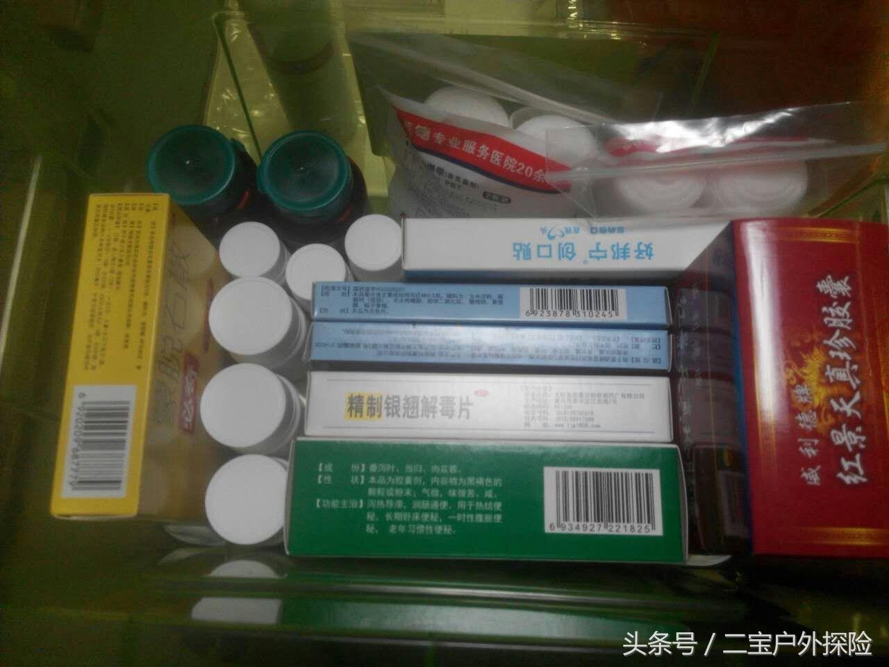 红景天,蒙脱石散,银翘解毒片,头孢,阿莫西林,速救心丸,云南白药,感冒药,维生素B1,B2,B6,棉棒,创可贴,绷带,棉花球,白胶带,止泻药,皮肤消毒液,氧气管,碘伏,医用酒精,双氧水,风油精,其他根据自身情况携带。