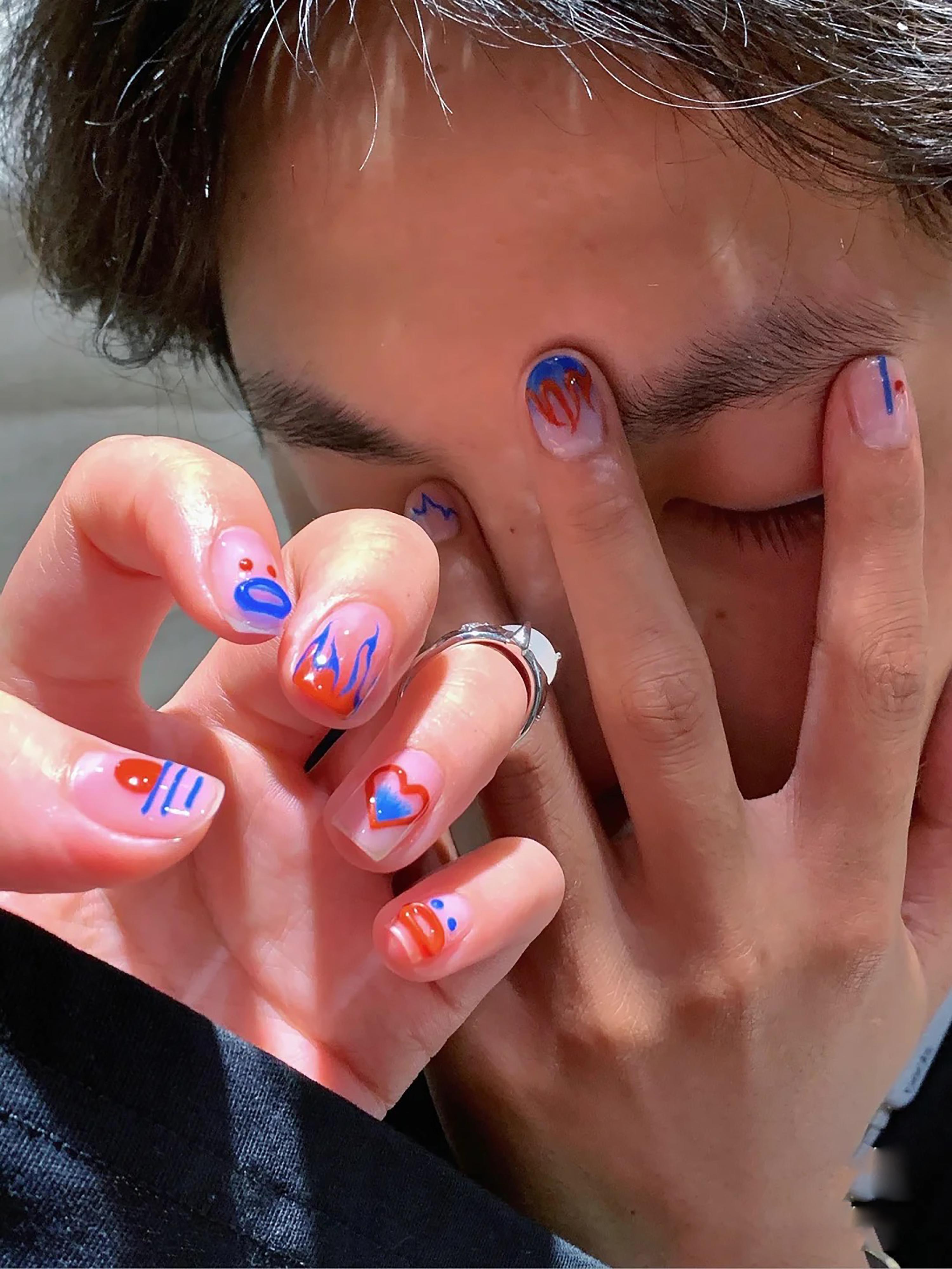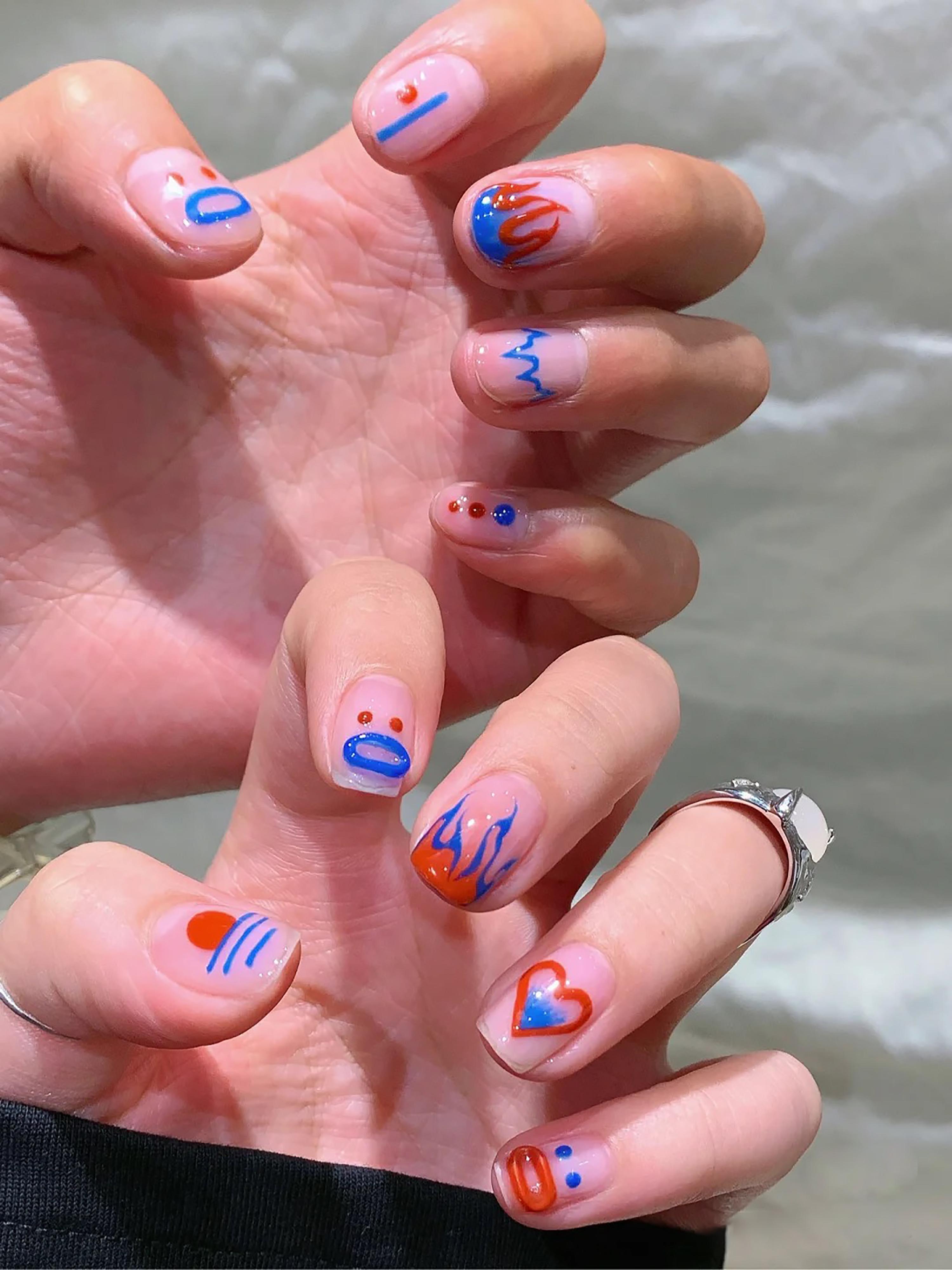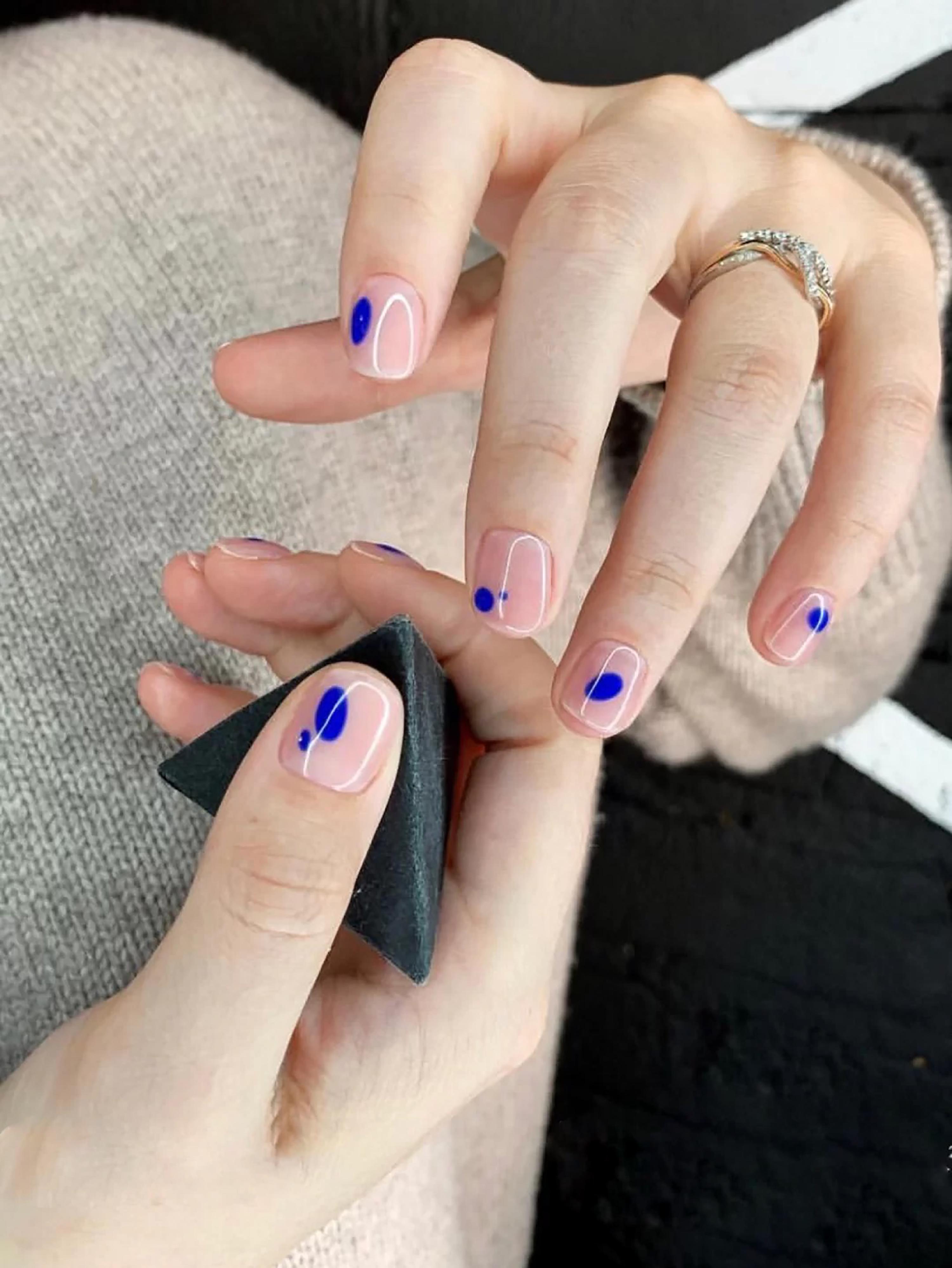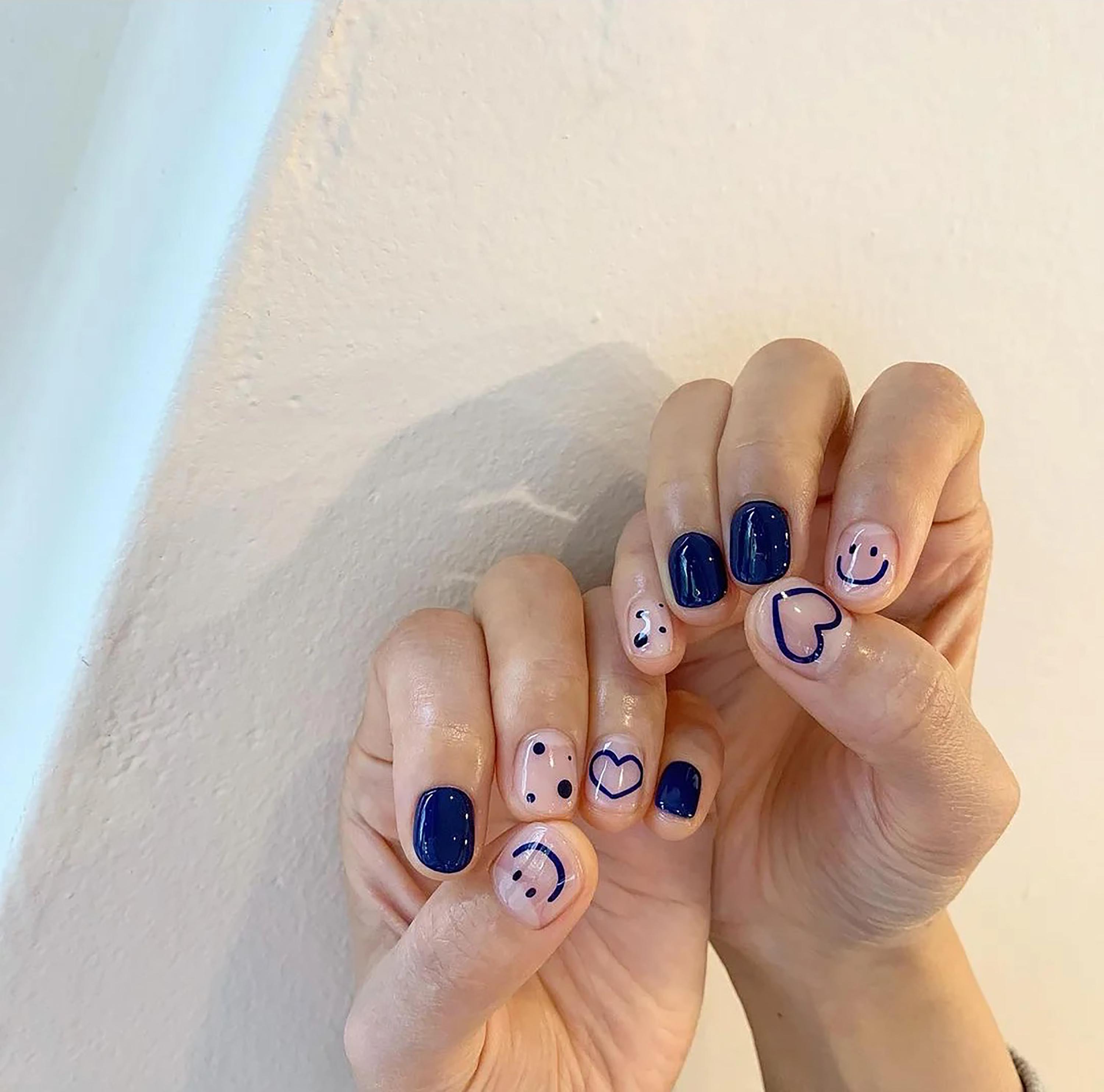 ins风美甲今年很流行的克莱茵蓝和ins风的美甲真的太配了,而且克莱茵蓝本身就很有夏日的氛围感,不论搭配什么图案都好看极了。
