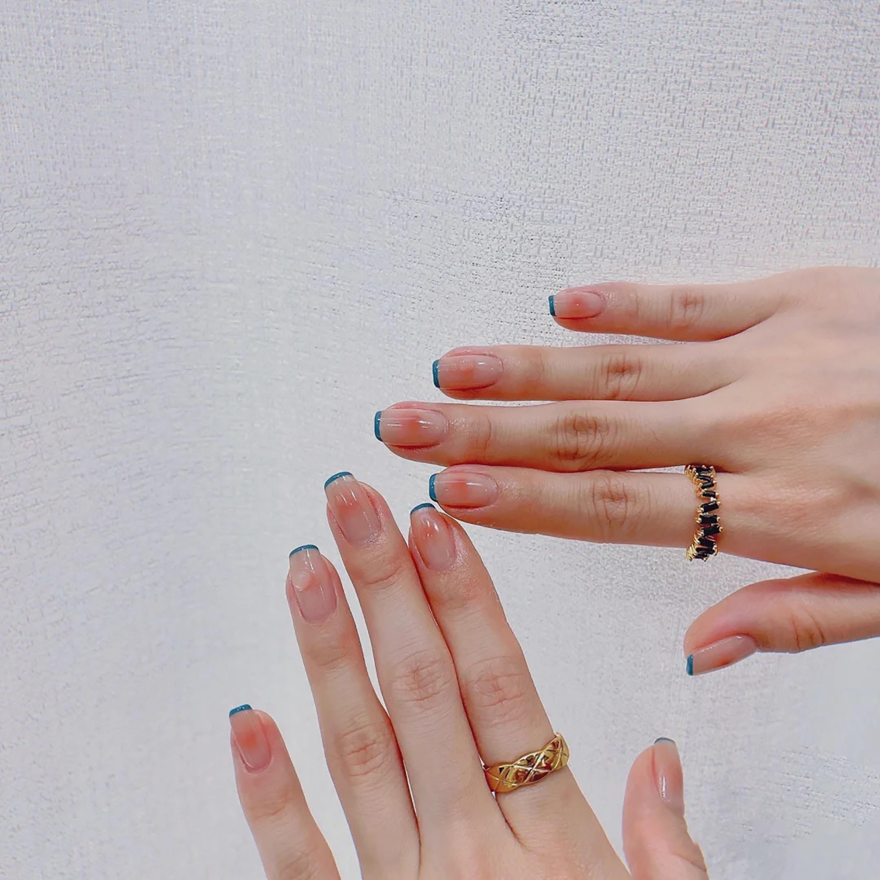 清透的法式美甲配上一点点的勾边,简约低调又大方,指甲长长的时候也不会太。