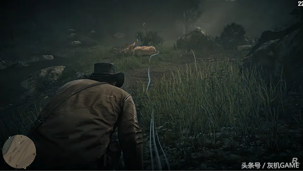 5、模拟器来了,关于狩猎与钓鱼狩猎与钓鱼的设定如今也是被许多开放世界游戏快玩烂的地方了,我们来看看R星是怎么在“腐朽”中努力创造价值的。首先,追踪猎杀动物等一系列常规操作是基础,在此基础上,R星设计了狩猎品价值这一要素,在游戏中,如果玩家用子弹而不是箭射击动物,那么动物皮毛在城镇屠夫的贩售价格将低于干净的猎杀。