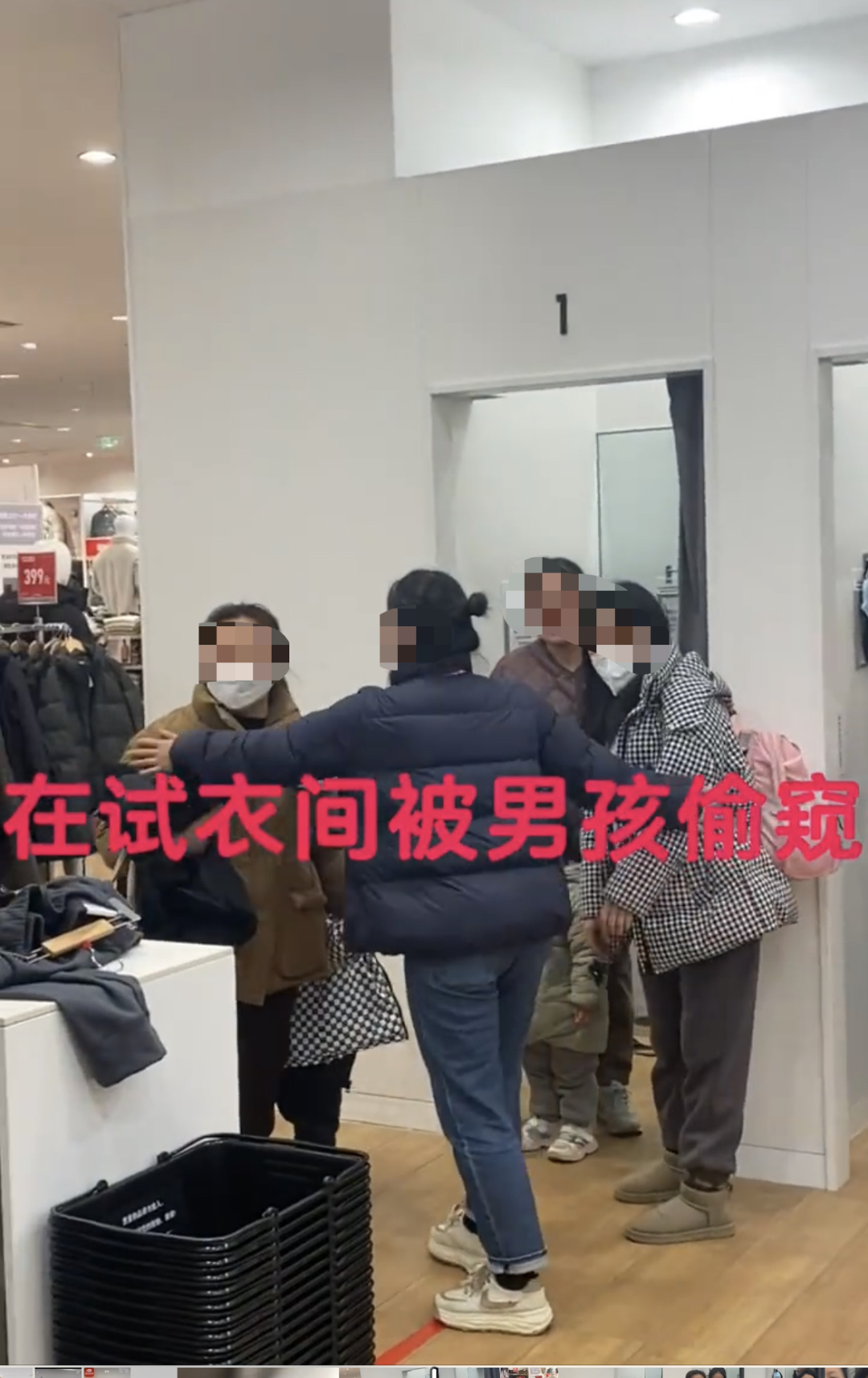 1月4日凌晨,一名女性网友发文称,3日晚上在优衣库试衣间换衣时被男孩偷窥,还被家长骂了,并且被抢夺手机。