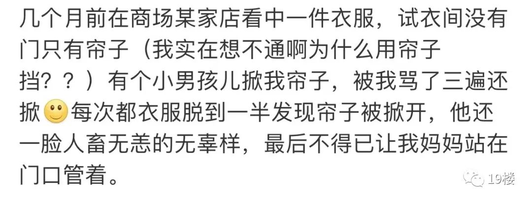 该女士告诉记者,从推帘子的手来看,她感觉到,孩子不止两岁,手超过了她的膝盖,并且力气很大。她穿上衣服后推开帘子,看到其中一位小男孩的身高很高,到达了家长腰部的位置。