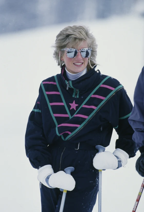 戴安娜也是个热爱运动的人,她的休闲运动穿搭让民众纷纷仿。比如这套红色滑雪服,搭配着针织品头带就很亮眼。