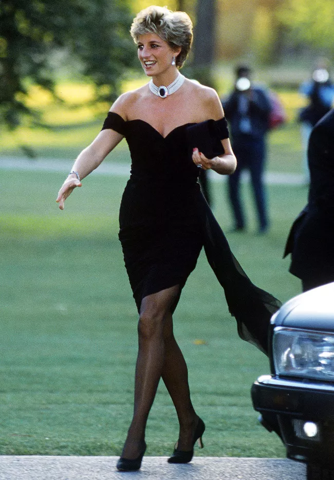 戴安娜在出席伦敦的活动中,穿上了这件的“复仇礼服”。开启了戴安娜的性感礼服时代。