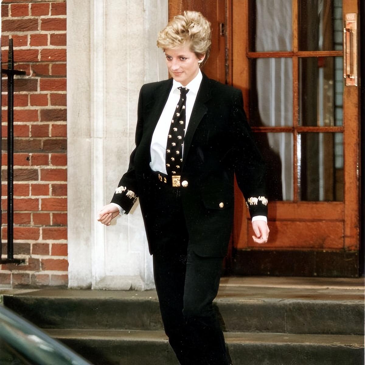 其实戴安娜王妃本身就有1.78米的大高个,穿上西装更显出她的细腰长腿,帅气。