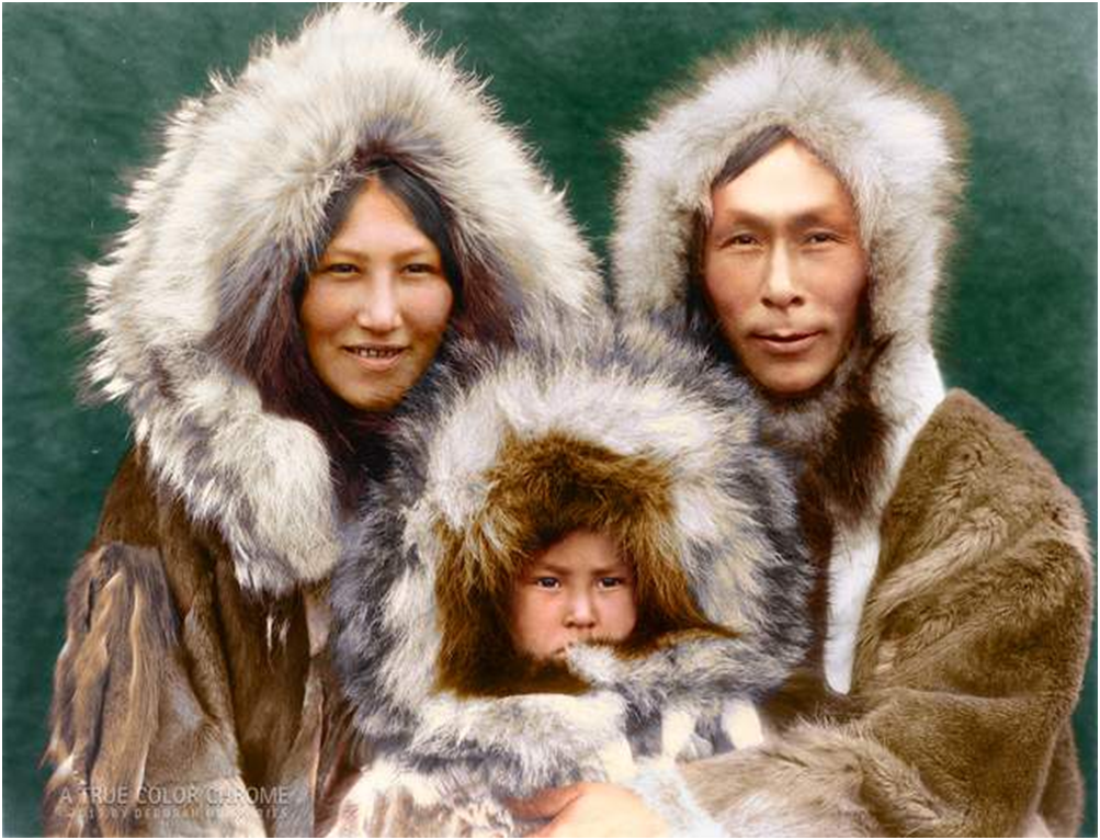大约1929年,一个爱斯基摩人家庭合影,隔着屏幕就感觉到暖和。