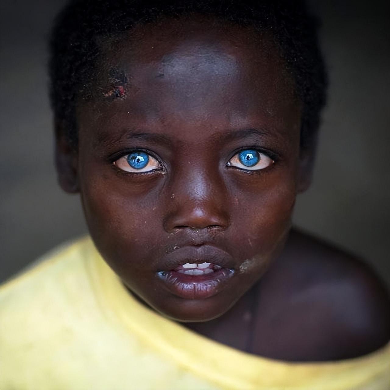 埃塞俄比亚男孩患有一种白化病,只影响他的眼睛,使它们变成亮蓝色。