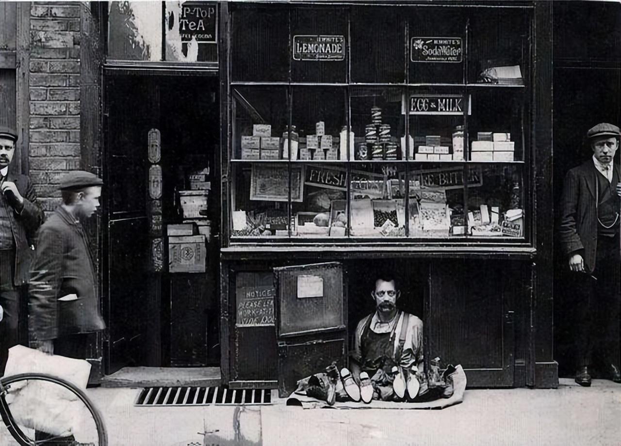 1900年,伦敦小的商店——拥有1.2平方米鞋店和它的鞋推销员。