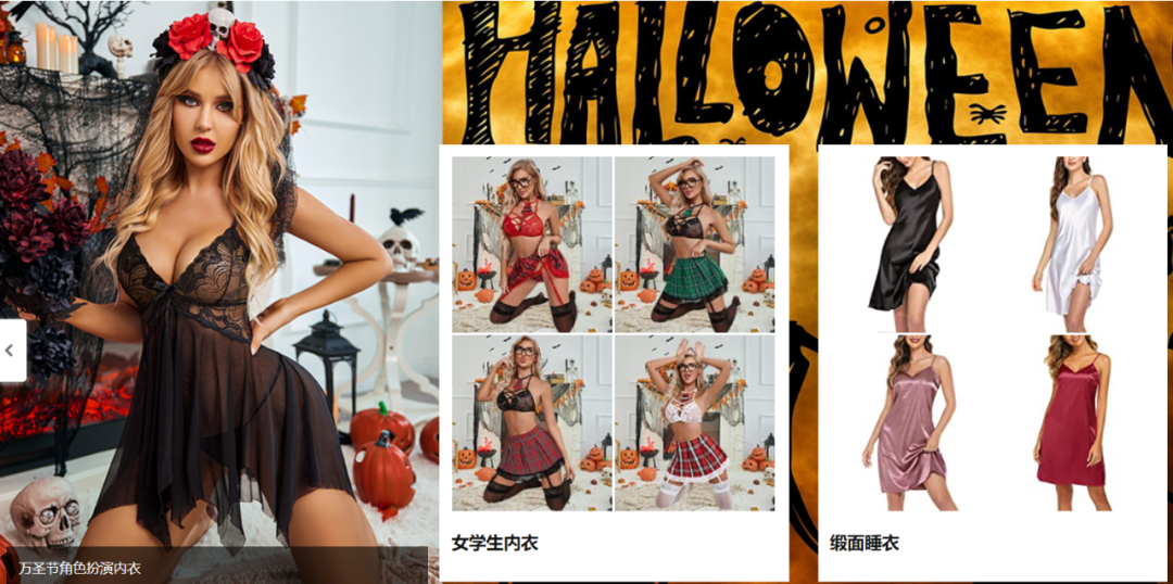 Avidlove 似乎很明白“万圣节+性感内衣”的需求点,在产品详情页中还推出了万圣节主打产品系列,显然把这块流量抓得死死的。