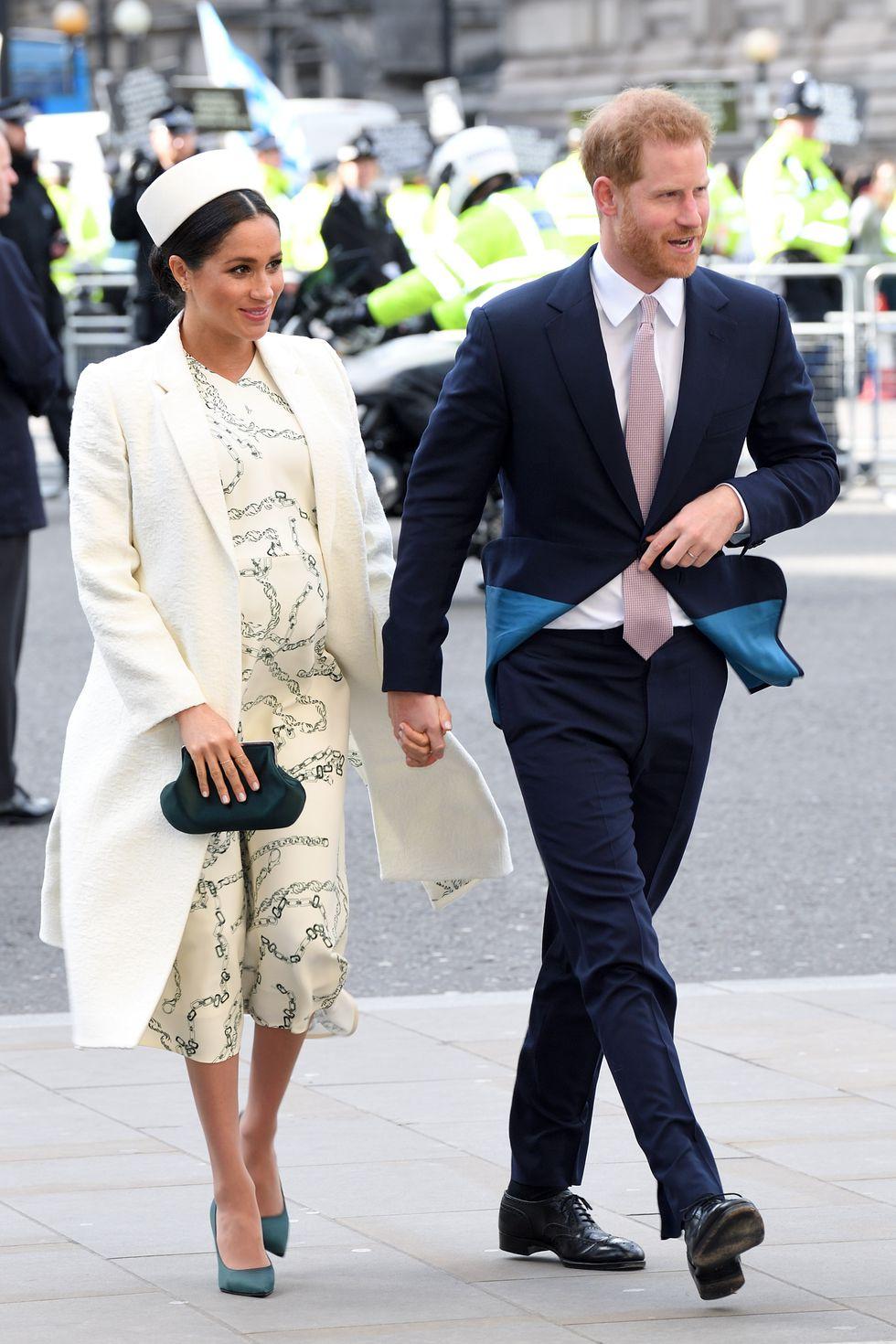 look1:维多利亚•贝克汉姆定制套装2019年3月11日,为了庆祝英联邦日,梅根和哈里王子与英国皇室成员一起参加了威斯敏斯特教堂的传统礼拜。苏塞克斯公爵夫人梅根身穿维多利亚•贝克汉姆定制套装,头戴Jackie风格的圆礼帽。