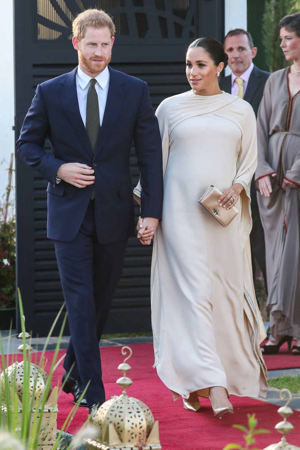look8:迪奥定制礼服2019年2月24日,这对夫妇在摩洛哥之行的第二天出席了英国驻摩洛哥大使在英国官邸举办的招待会。梅根身穿迪奥定制礼服,脚踩迪奥高跟鞋,手拿迪奥手包。