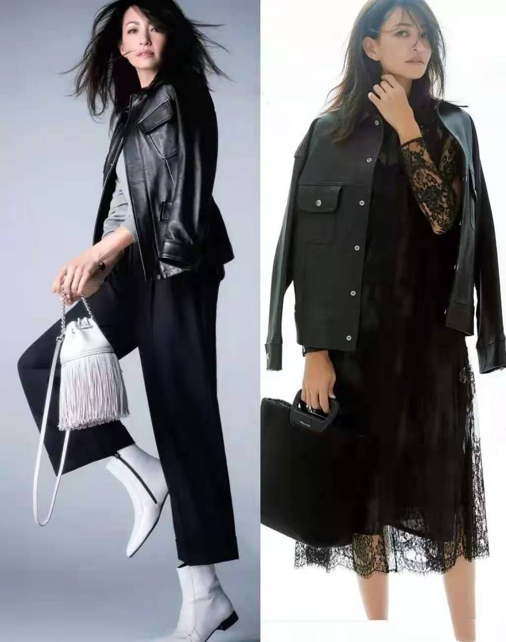 皮衣的飒酷和硬朗,简直为大女人而生。不同故意标榜新潮时髦,带着沉淀历练后的大女人,穿出了皮衣极简的高级美。