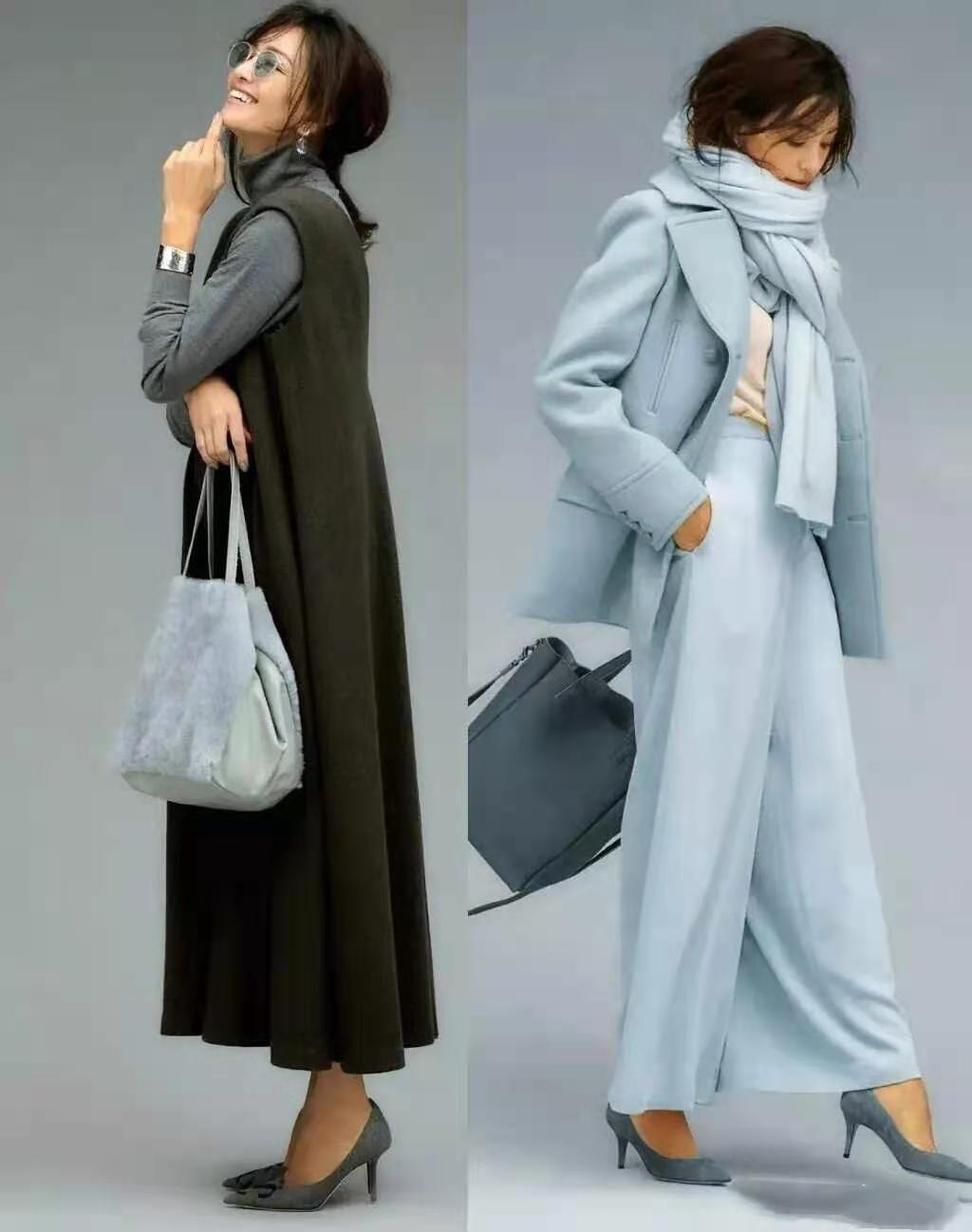 同色系穿搭,因颜色趋同,整体视感自然舒适,一直是表达高级和气场的配色典范。而大女人们超强的自信气场,并不需要借助花哨的颜色,越简单越高级。