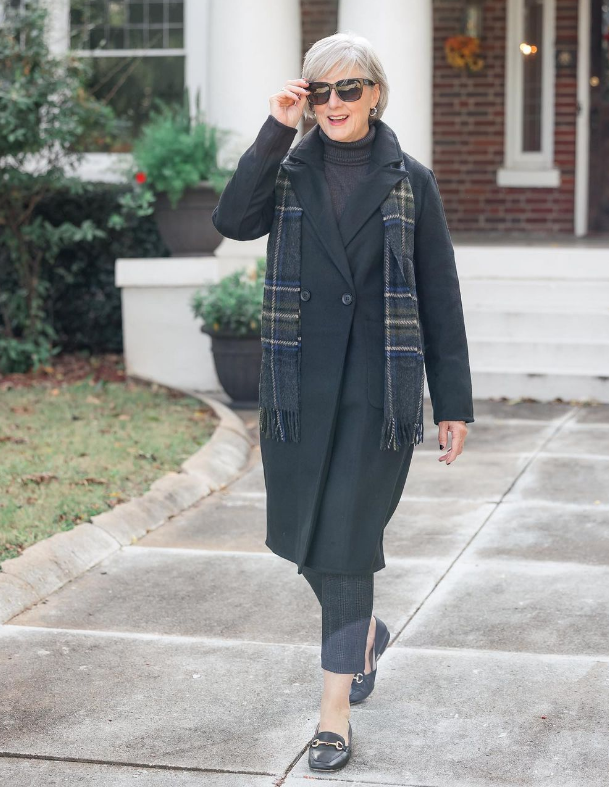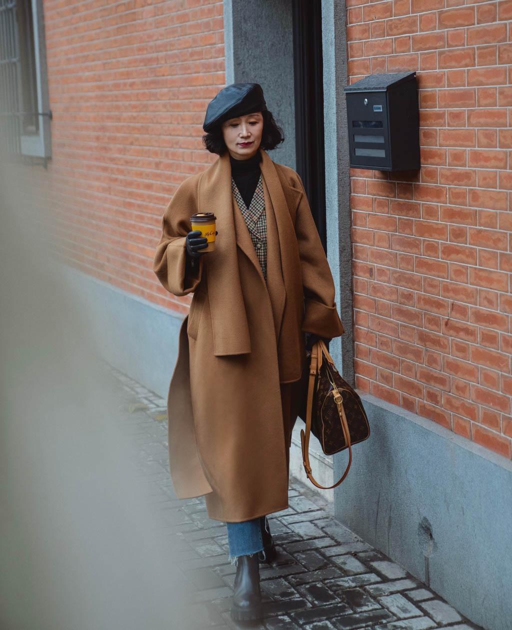 穿搭需要有配饰的装点,对于中年女性而言显得更为重要,尤其是选择一些很显质感的配饰,配上大衣的穿搭。