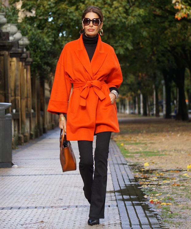 比如:时尚博主三木的妈妈,她选择比较宽松的H版型大衣,在肩部能够撑起的情况下,肚腩也可以因此被遮挡,穿搭的精致感呼之欲出。