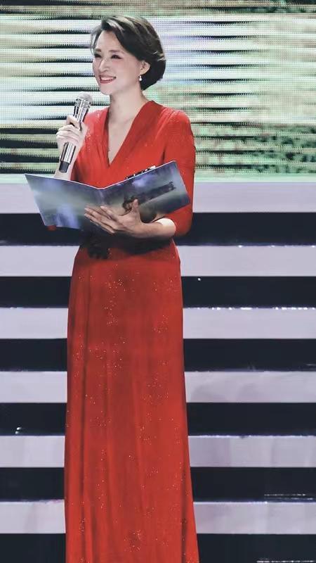 董卿通过这种红色连衣裙展现出了自身的好气质,胸前的v领设计更是能够直接延伸她的肩颈线条,颈部被拉长,自然而然也就有利于提升气质,然后再通过结合短发造型,展现出简约利落的风格,也是很有魅力的。