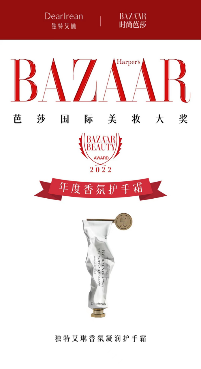 A:前段时间我们获得了时尚芭莎的年度香氛护手霜的奖项,艾琳的这款护手霜在市场上受到了很多消费者的喜爱,反馈不错。我们公司常说一句话,叫品质就是自尊心,原料方面我们只和TOP3的香精公司去合作,也应用了前沿的香氛技术在这款护手霜里,叫乐活香氛技术,什么叫乐活香氛,简单理解就是使用者在闻到这款香氛的时候会产生愉悦的情绪氛围。