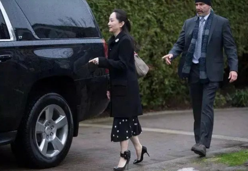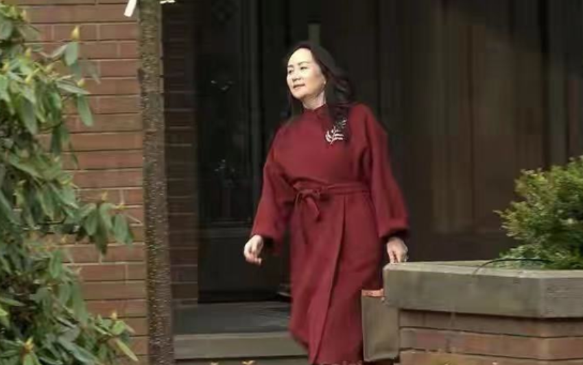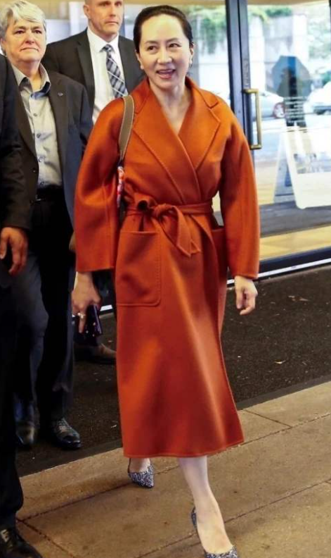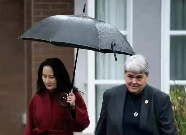 孟晚舟雨中亮相,穿系带大衣如优雅贵妇,换了发型气质也变得妩媚。