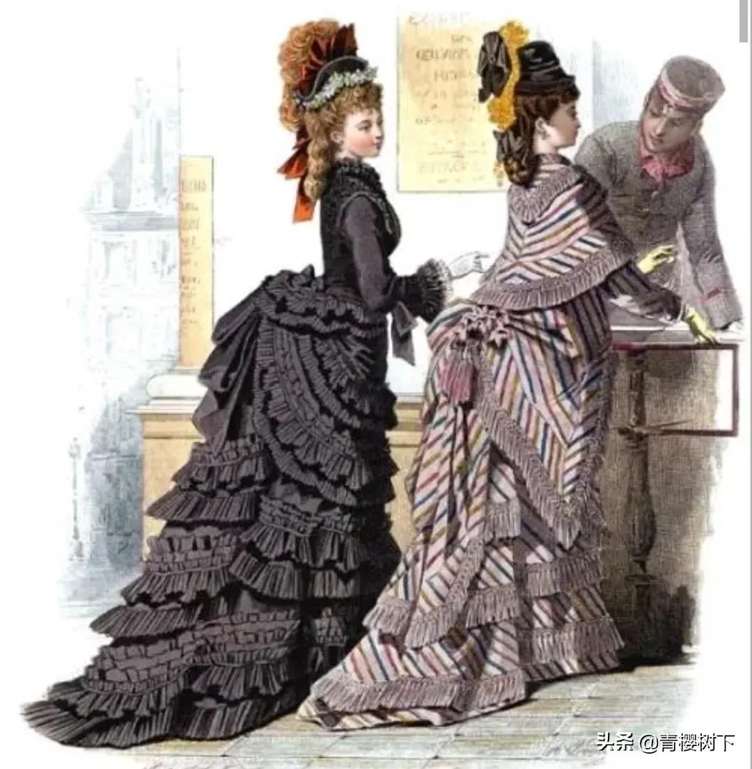 女性在佩戴上这种裙撑后就可以穿蓬蓬裙了,这样裙子就可以像雨伞一样在裙撑的支撑下完全展开,用我们现代人的时尚眼光来看,会是一种很奇怪的腰臀比例,但在当时,那可是万千女性理想的时尚状态。