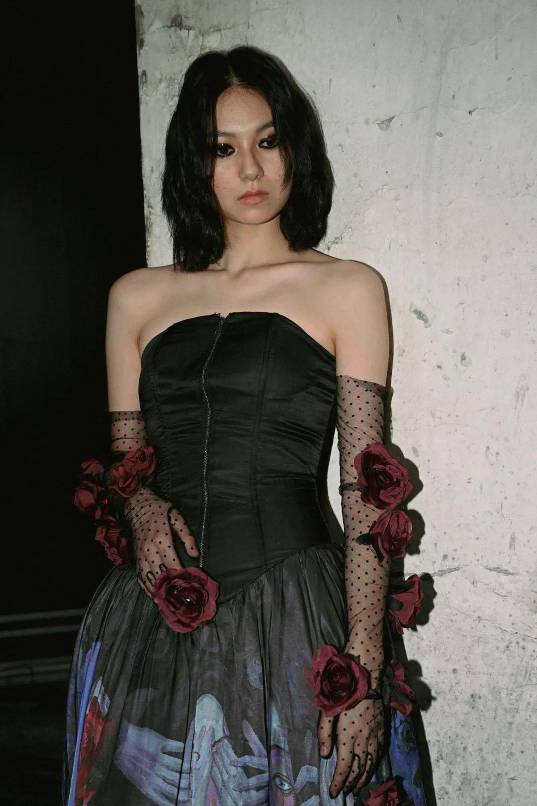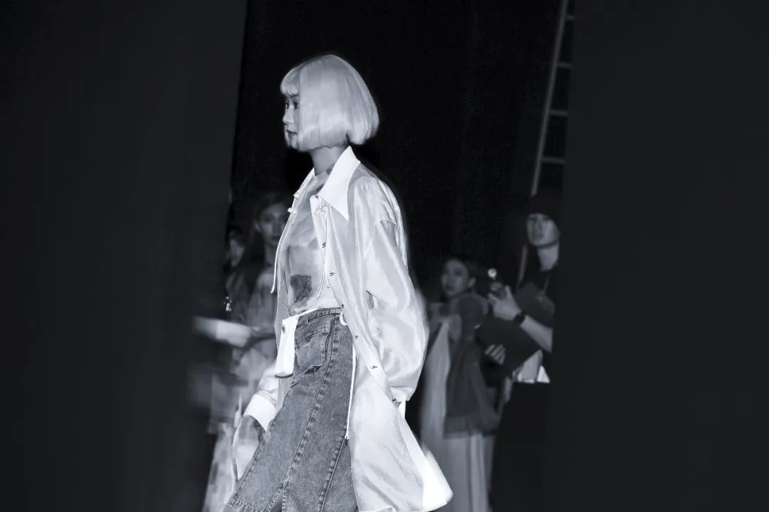 LADECENTE本季在服装展示之外是更具冲击力的情感表达。玫瑰纤维融合新锐艺术作品,展开一次自我人格的对话。血液扩散图案是对生命内观的性感表达;丹宁代表血管平缓的流动美学;黑色生物基面料以解构主义阐述多面情绪。