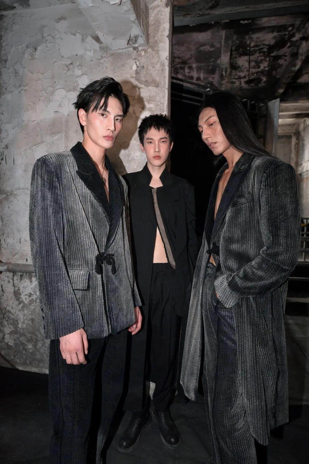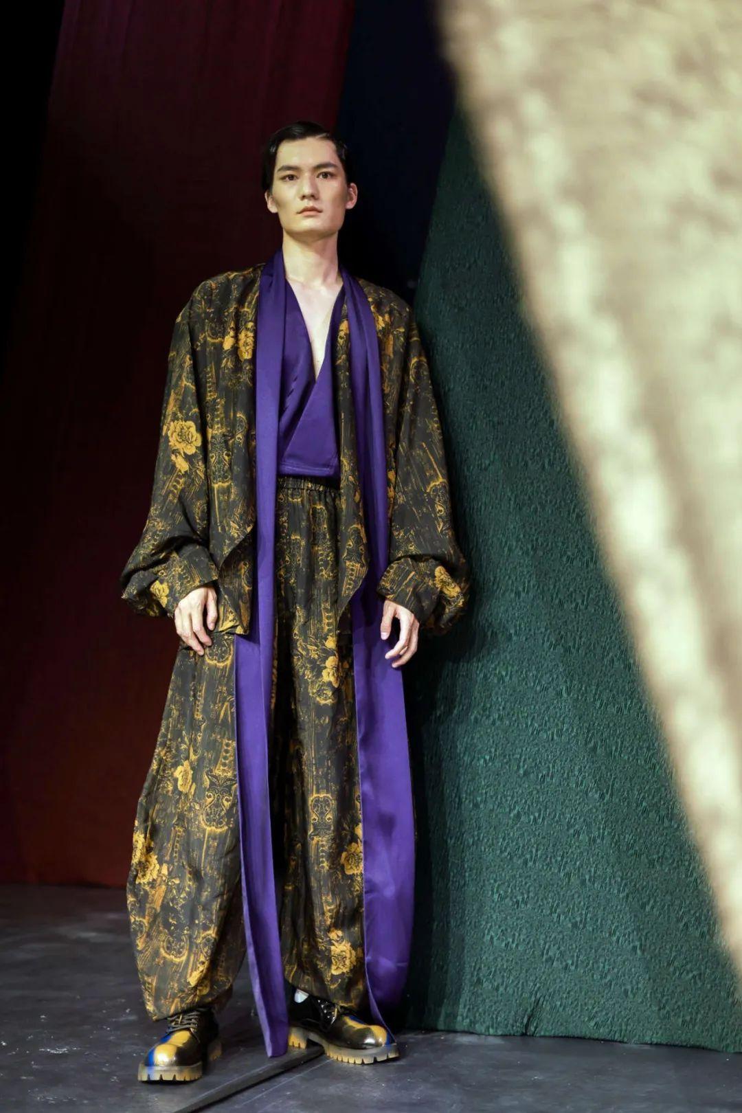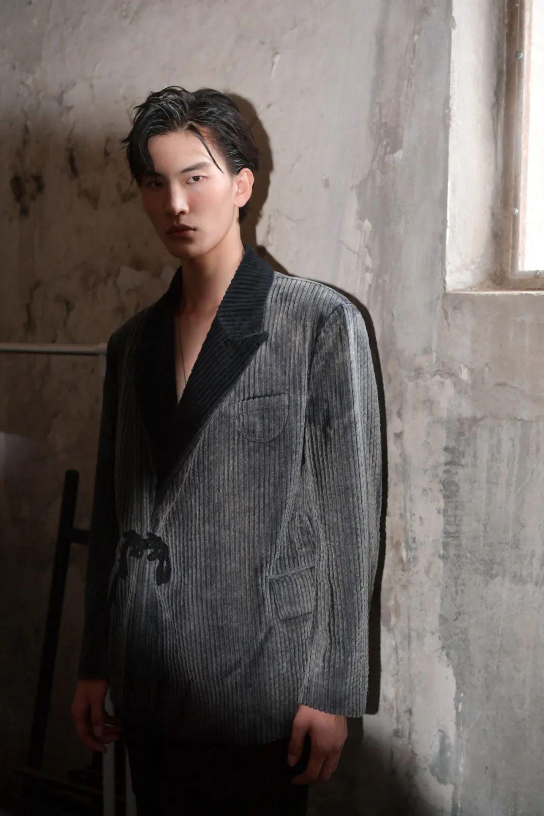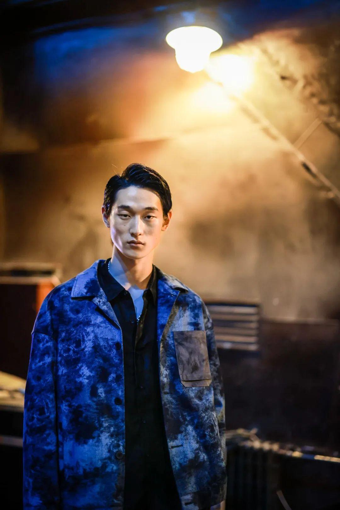 新的一季今日青年通过整体硬朗刚健的造型,回归男性硬朗的风格。对中山装、西装、制服、风衣、皮夹克等品类进行了先锋化的演绎,将后朋克的硬核而冷峻与工业风的简洁而利落融合。而看似叛逆的系列里却包含着环保正念、非遗创新等具有使命感的设计。