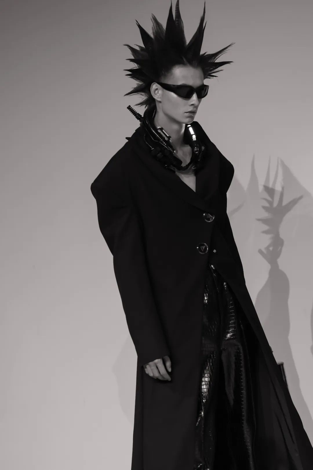 UNIX_T本季设计着重探索服装的结构重组与风格混搭,将独特的思想与不同款式、不同元素进行串联,将现代设计与经典面料、廓型相结合,将反乌托邦气质与艺术思想交融,将现实与虚拟之间的界限彻底模糊化,传达一种前卫,领先于时代的潮流态度。