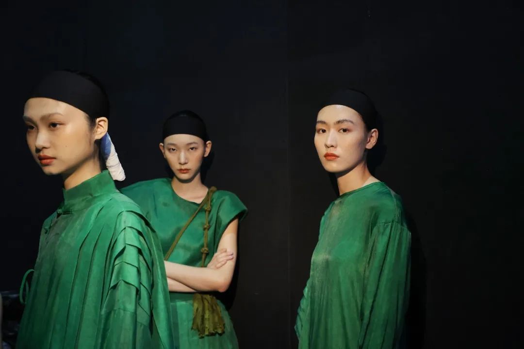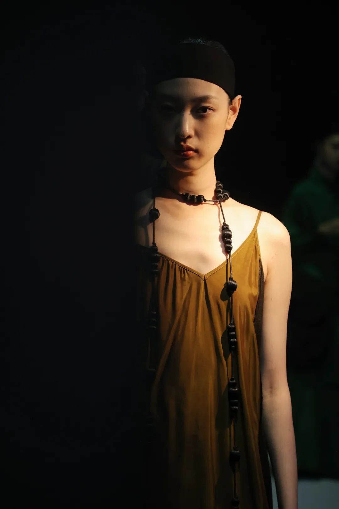 佗寂本季在延续品牌色系大地色的基础上加入充满叙事性的夏日色调,重新解构中国传统色,呼应这一季的主题“重塑”;深挖多种民俗工艺,对其进行了再造和创新;并运用新科技、新材料对中式传统面料如非遗面料香云纱也进行了再造;对于服装解构手法同样重新诠释。