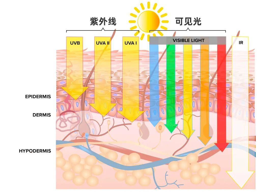 这其实是因为目前大多数防晒霜,都是在紫外线波段起到防护作用,而忽略了可见光,尤其是靠近紫外线波段的蓝光。