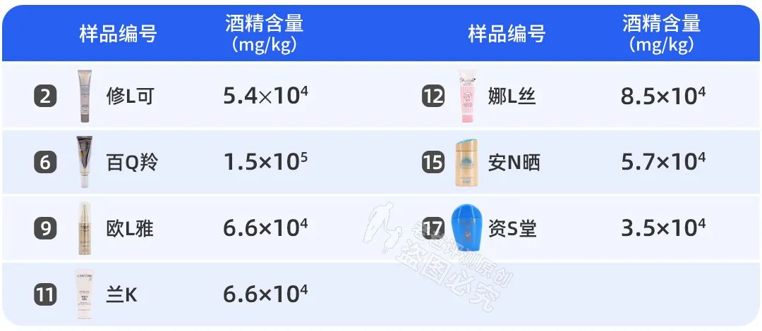 为了避免酒精过敏者误用,我们将 21 款样品送到实验室,按照《化妆品技术规范》要求检测其乙醇含量。结果 7 款样品检出乙醇,与成分表标识相符。