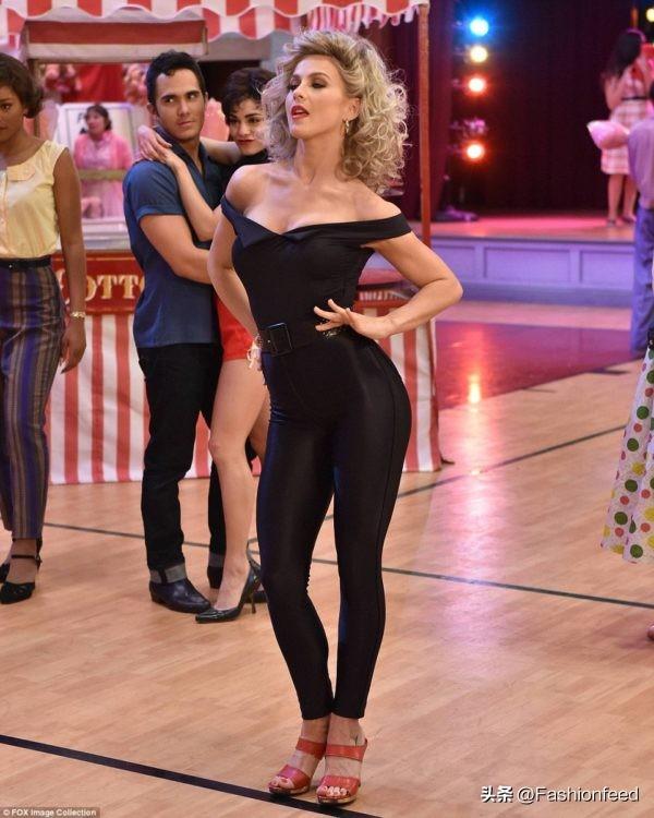 4.Sandy 和她 Shallder 上衣大家应该还记得油脂的后一幕吧?那么你不应该错过 Sandy 标志性的、令人难忘的转变和她现在许多女性穿的黑色套装。露肩上衣和高腰系带长裤与红色凉鞋相结合,是当今许多现代女孩夜间派对装束的灵感来源,在电影在电视上播放多年后。