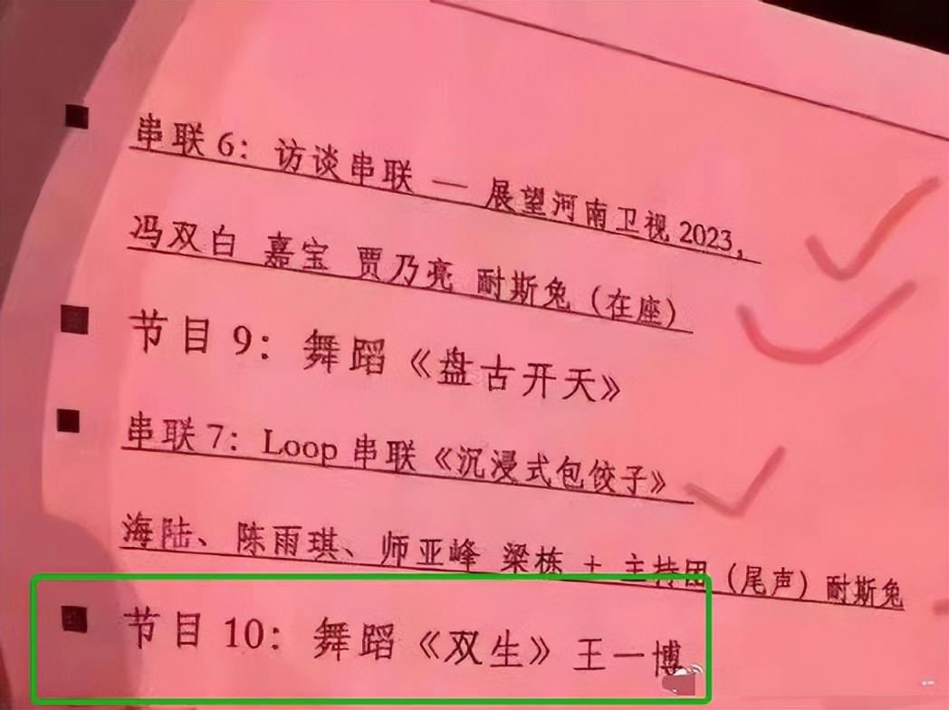 网友晒出河南春晚的节目单,王一博将在家乡春晚舞台上表演古典舞《双生》。