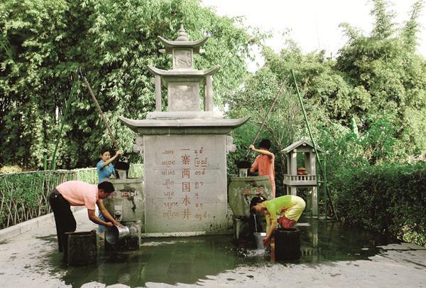从界碑一侧的栈道前行,你可以真实感受到中缅边民的生活起居,寨子里有一口水井,井栏上用中文和缅文刻着“一寨两国水井”的字样。村民瑞孟说,通自来水以前,就是这口水井哺育了寨子里的中缅两国人民。瑞孟还说,由于没有屏障,中国的瓜藤爬到缅甸的竹篱上去结瓜,缅甸的母鸡跑到中国居民家里生蛋也是常有的事。