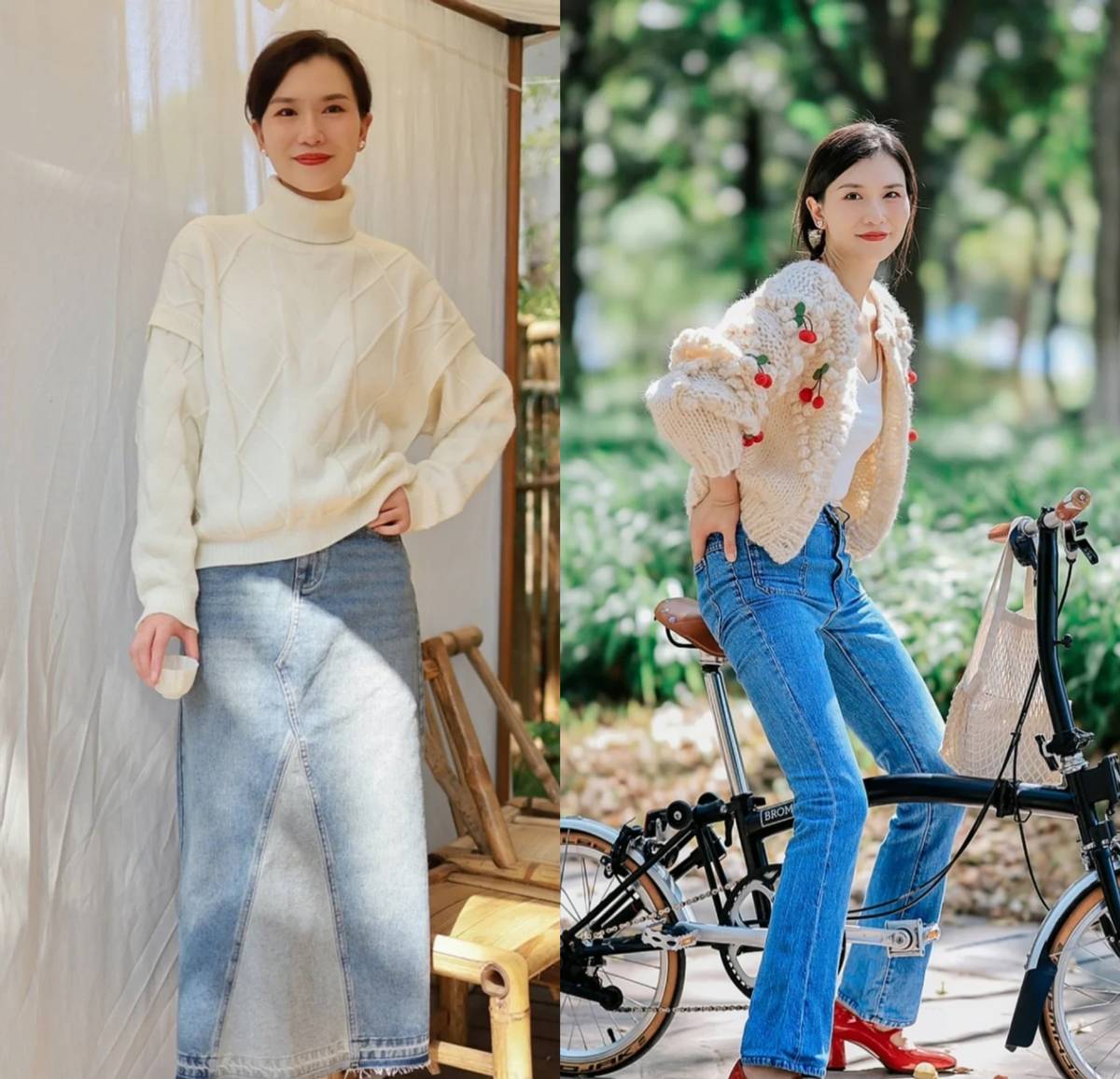 蓝色半身裙在材质方面可以保留一些差异,可以是针织的面料,穿起来舒适又具备足够的弹性,也可以换成牛仔的质地,虽然没有延展性,但减龄作用更胜一筹。