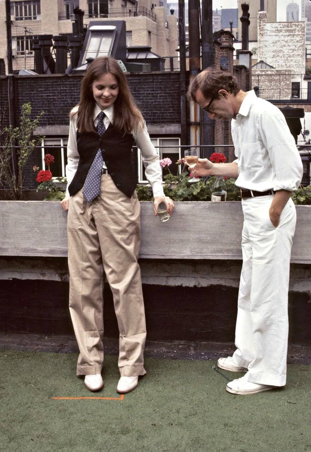 人们也在银幕中寻得蛛丝马迹。伍迪·艾伦的电影《安妮·霍尔》也是“知识分子风”的经典代表,女主角黛安·基顿穿西装、戴眼镜的中性穿搭,就像伍迪·艾伦本人的复刻,是这场风潮里常被提及的例子。除此之外,侯麦电影里总是在看书、谈论哲学的法国女主角,也常被拿来佐证这一风格。
