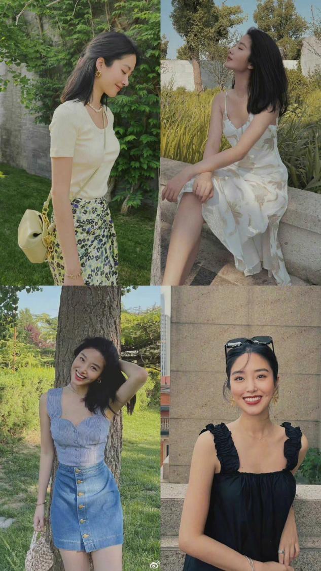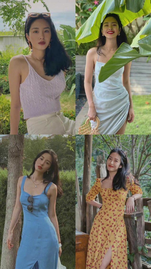 在杨彩玉的搭配当中,比较有代表性的两种类型是印花元素的单品,在夏天的时候或者是春天穿长裙的时候带有印花,复古风格十足,无意中便透露出了一种法式的浪漫,又或者是吊带类型的穿搭,对于普通人来讲,吊带类的单品只要不是超胖的身材,选择适合自己的都能够很好的驾驭,通过露肤的方式迎合着周围的氛围,这种风情立马就穿出来了。