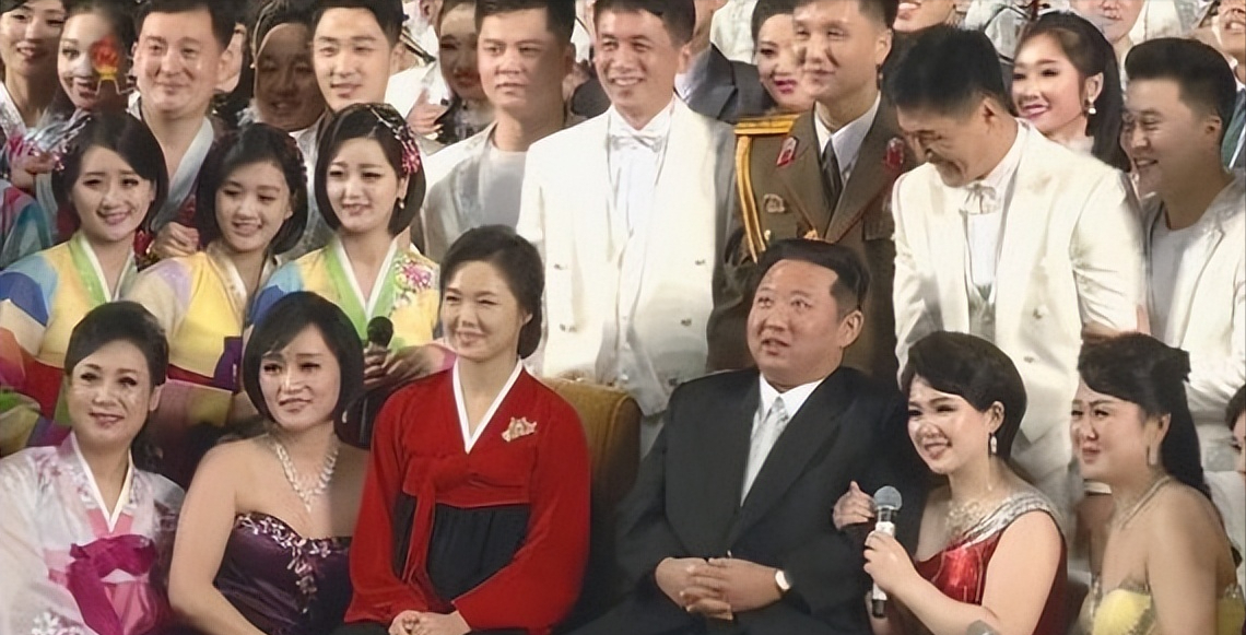 盘起头发的李雪主更加温婉了,坐在金正恩的身边,而我们可以看到金正恩夫妇身边的表演人员颜值都还挺高,而在造型上也是很有现代感,抹胸的长款礼服裙,或者是颜色更加艳丽的朝鲜传统服饰。