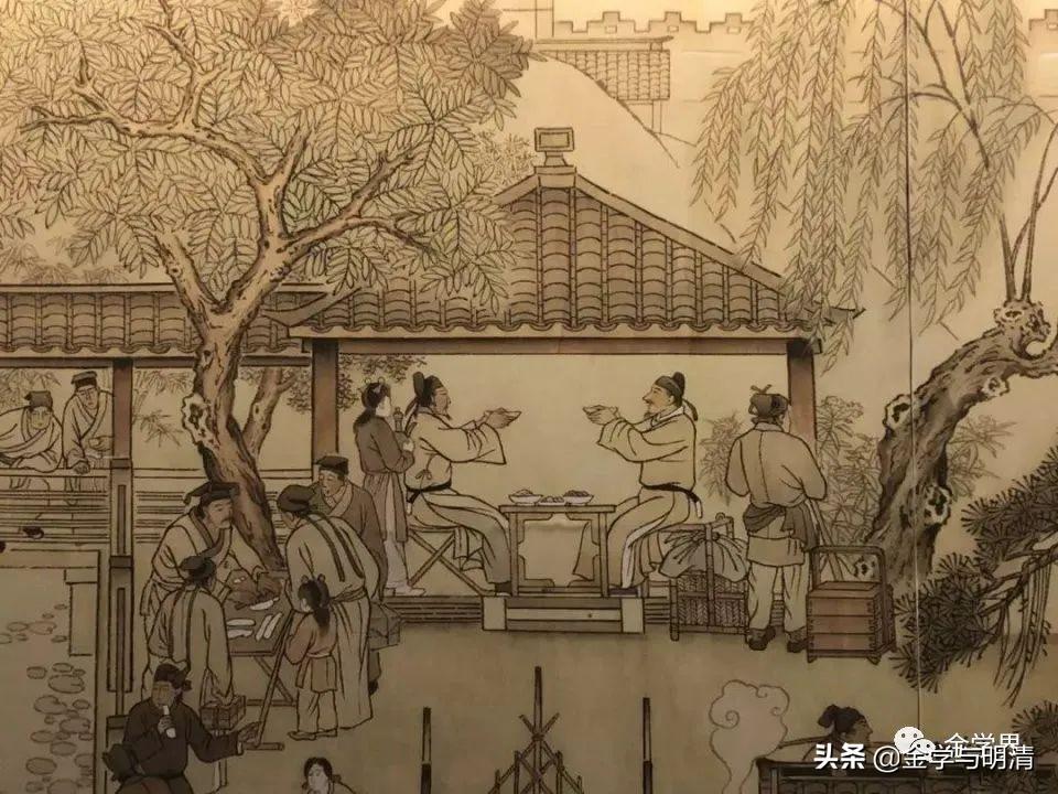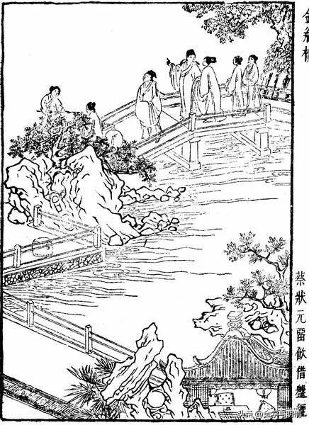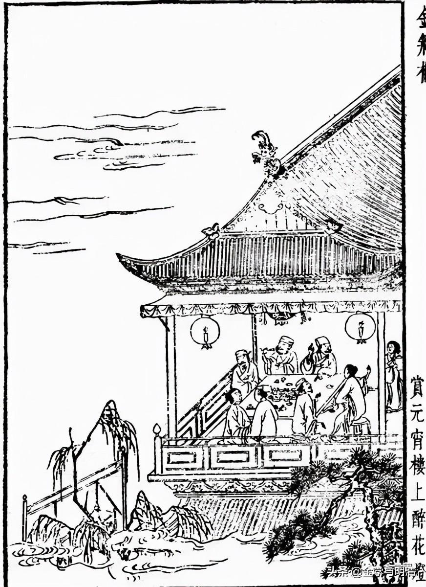 《金瓶梅》第四十九回,写西门庆宴请宋巡按和蔡御史,宴会后留蔡御史在卷棚内小坐,携妓游园,弈棋题诗,又间杂听戏饮酒。