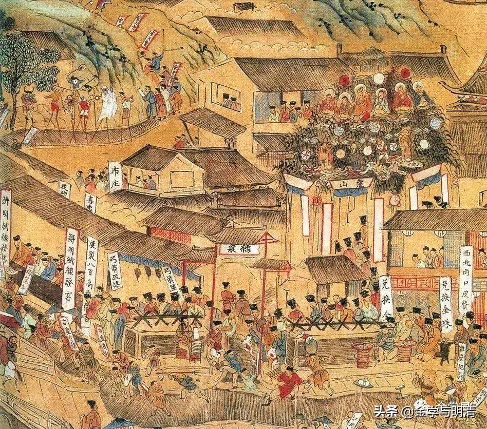 这一夜的街市上也“香尘不断,游人如蚁,花炮轰雷,灯光杂彩,萧鼓声喧,十分热闹。