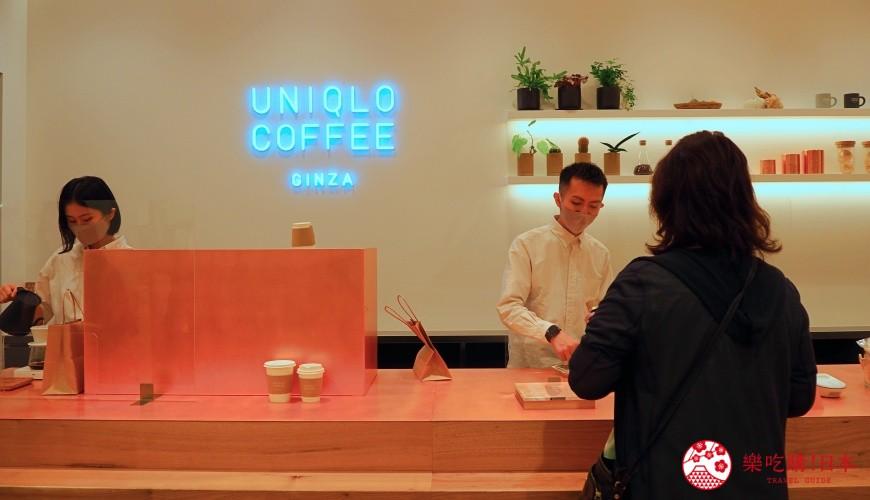 一路上到顶楼12楼,终于来到重头戏「UNIQLO COFFEE」:这是全日本首间UNIQLO咖啡专区,简单的点餐柜台,手扶梯口则设有少数吧台座位,提供逛累的客人可以内用喘息的空间。浓浓的咖啡香气飘散在整个楼层,光是闻到疗癒的咖啡香就让人不自觉放松了起来。