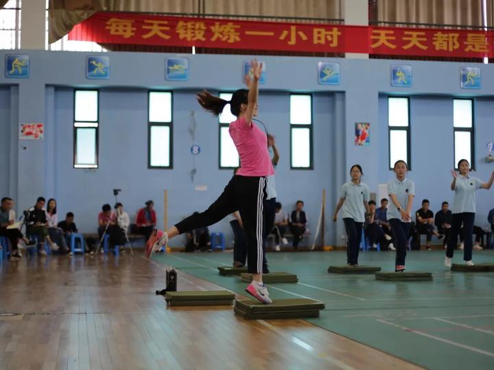 她大学主修的是健美操,平时又爱练瑜伽,还会跳跳舞,所以很注重形体。“设计一个操,学生、家长、老师都能在家跳。”